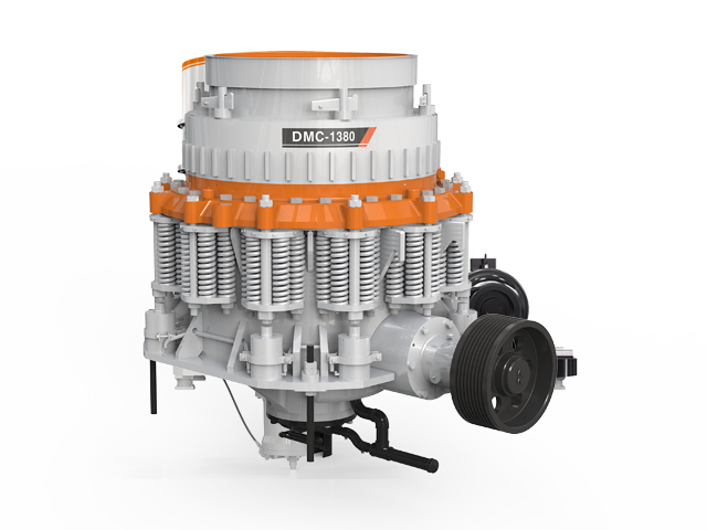 硬岩物料经给料机均匀喂料,输送到颚式破碎机进行粗碎,粗碎后的物料经振动筛筛分后,输送至圆锥破碎机进行中细碎。