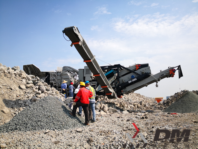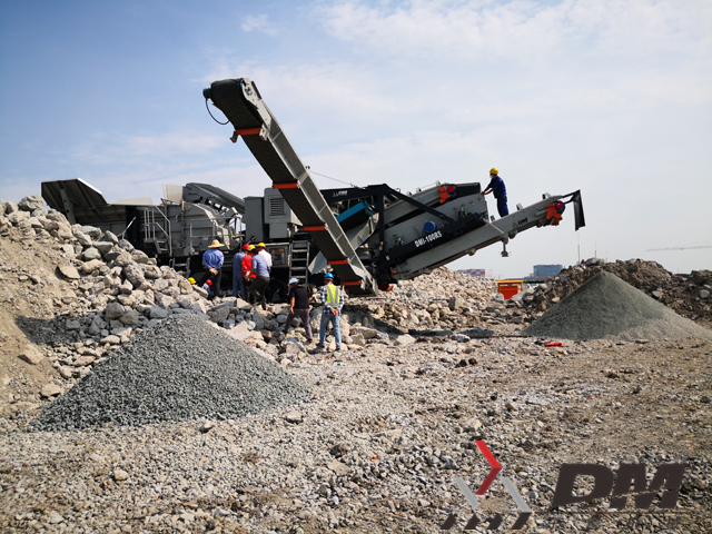 闵行现场的DMI-100RSX履带移动反击式破碎筛分一体机:主机采用高耐磨材料、大破碎腔,使其进料粒度大,产品稳定,产量高、粒形好。破碎机后架由液压开启,便于检修维护。其标准配置为外接电源型,简单高效,可靠性高,设备维护和运行成本大幅降低。尤其是采用外接电源型理念,相比柴油机型节约燃料成本可达25%以上。其最新的履带移动式破碎筛分一体化设计,使设备抵达现场即可马上投产,并快速产出两种不同成品料,可谓多快好省性能出众。