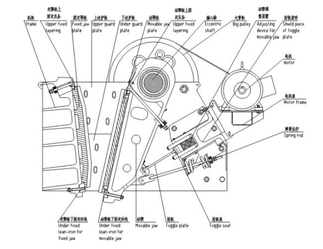 1.本系列颚式破碎机运行平稳、使用寿命长,装备有双楔块排矿口调整系统,方便、快捷地调整设备排矿口,即使在空转情况下也可在几分钟内把排料口调到预定值,在液压系统或螺杆系统配合下,实现自动化,比传统颚式破碎机垫片式排料调节系统更简单、安全、快捷。