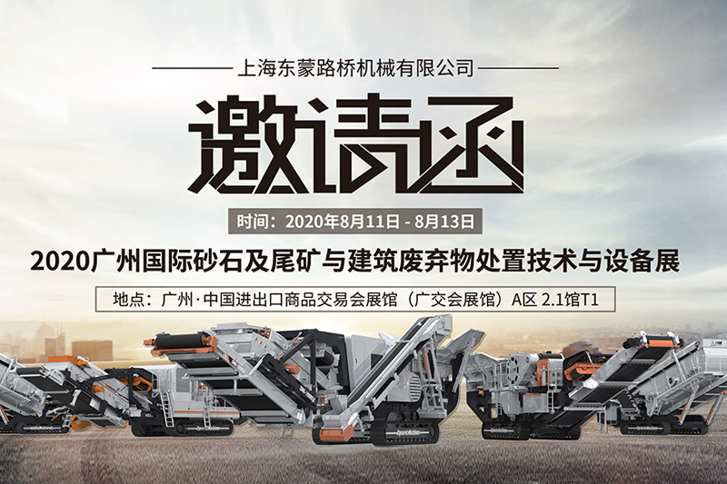 2020年8月11日-13日,“第六届广州国际砂石及尾矿与建筑废弃物处置技术与设备展”将在广州隆重举行。作为受邀企业上海东蒙将携最新力作亮相南国花城。据悉,本次为期三天的“第六届广州砂石展”将汇聚近百家国内外知名装备携手众多中小装备厂商共襄盛会,为国际买家提供一站式设备采购平台,进一步促进当下砂石骨料设备行业的交流合作,并旨在通过此次专业交流展示平台带给中国机制砂机械行业一个崭新思路和全新视角,为我国智能制造行业优秀产品及科技成果推广提供更加宽广的营销渠道。